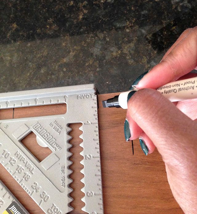 1. First you will want to decide where to place your measurements. I lucked up with a board that was 120 cm so I used that as my guide. Using a permanent marker, on the multiples of 10s I made my lines 2 inches in length and added numbers. On the multiples of 5s I made the lines 1 inch.